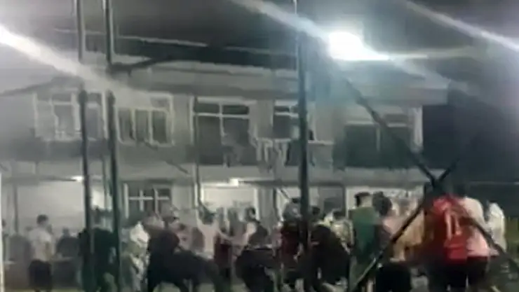 İzleyici Y.K. kurusıkı tabancayla halı sahaya girip rastgele ateş açtı.