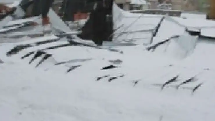 Ağrı'nın Patnos ilçesinde kar yağışı ve çatıda biriken kardan dolayı bir halı sahanın çatısı çöktü.