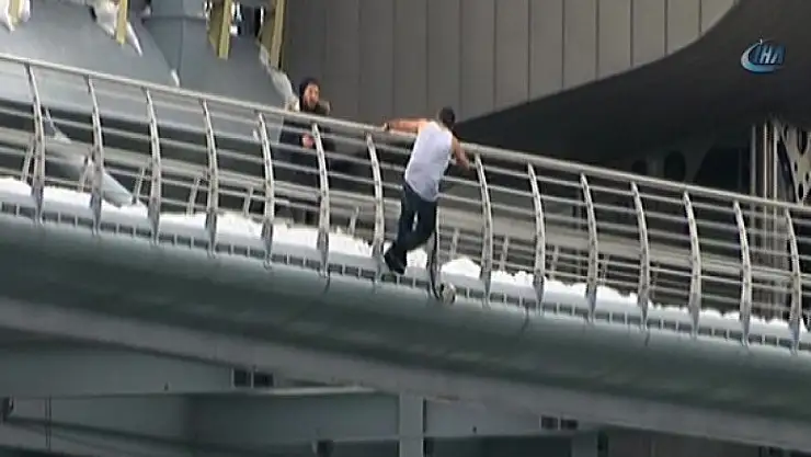 Haliç Metro Köprüsü'nde aksiyon filmlerini aratmayacak sahneler yaşandı. Kimliği öğrenilemeyen bir kişi köprü üzerine gelip, seyir terasından aşağıya atlayacağını söyledi. Polis ekiplerinin yoğun çabalarına rağmen şahıs ikna edilemedi. Bir süre sonra kimliği belirsiz şahıs kendisini Haliç'in soğuk sularına bıraktı. Şahsın aşağıya atlayışı saniye saniye İHA tarafından görüntülendi. Bu sırada aşağıda hazır bekleyen deniz polisi şahsa can simidi attı. Can simidini yakalayan şahıs son anda kurtarıldı. Daha sonra tekneyle karaya götürülen vatandaşa ilk müdahale sağlık ekiplerinden geldi. Sağlık ekipleri yaptığı müdahale sonrası şahsın durumunun iyi olduğunu belirlendi. Bu sırada polis ekipleri, vatandaşı ifadesini almak için polis merkezine götürmek istedi. Polis otosuna götürülen şahıs polis ekiplerinin elinden kaçarak gözlerden kayboldu. Tüm bu yaşananlar ise saniye saniye kaydedildi. Görüntülerde, Haliç Metro Köprüsü'ne çıkan şahıs polisin ikna çabalarına rağmen kendisini suya bırakıyor. Deniz polisi can simidini atarak vatandaşı kurtarıyor. Ardından şahıs polis otosuna götürülürken polislerin elinden kaçarak kayıplara karışıyor.