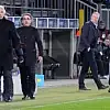 Yoğun itirazları nedeniyle orta hakem tarafından saha dışına gönderilen Boşnak teknik adam müsabakayı tribünden talip etti.