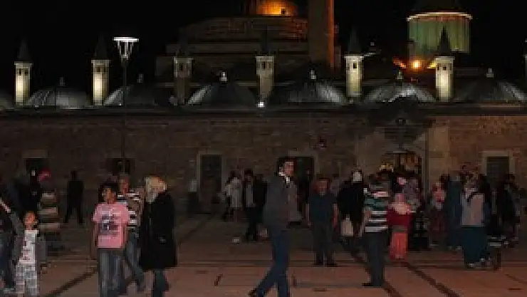 Mübarek üç ayların başlangıcı olarak kabul edilen Regaip Kandili gecesinde Konya halkı Mevlana'ya akın etti.