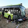 Otobüs, çarpmanın etkisiyle önce kaldırıma, ardından da oradaki yakıt istasyonuna ait istinat duvarına çarparak, tarlaya devrildi.