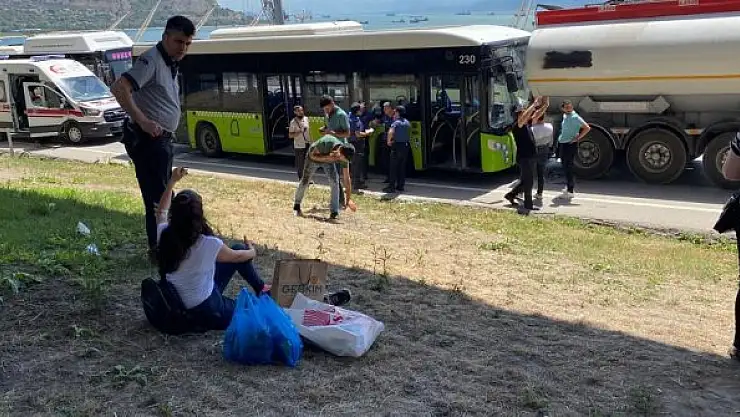 KOCAELİ'nin Körfez ilçesinde halk otobüsünün tankere çarpmasıyla 11 yolcu yaralandı.