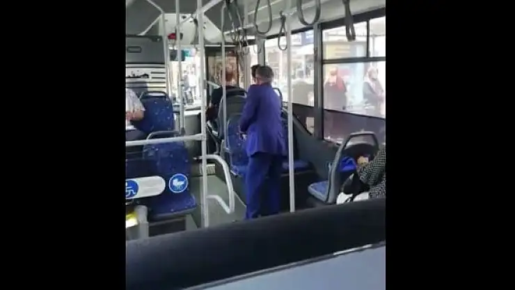 SİVAS'ta, özel halk otobüsünde maske takmayanlara tepki gösteren yolcunun bu anları, cep telefonu kamerasıyla görüntülendi.