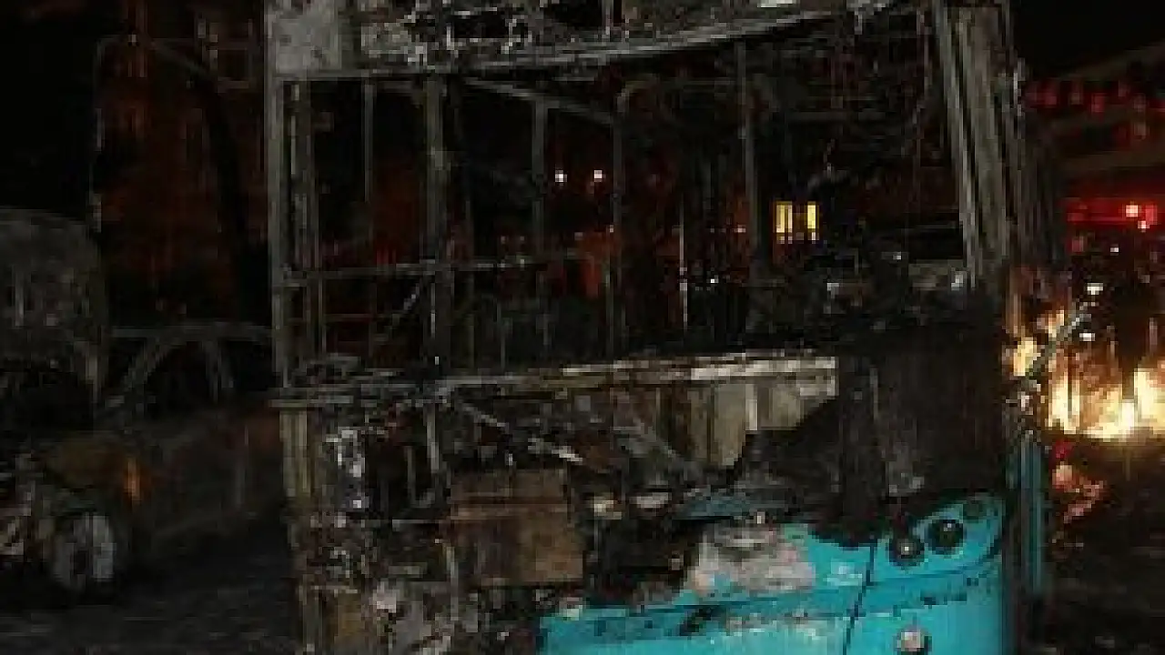 Durumun bildirilmesi üzerine olay yerine gelen itfaiye ekiplerinin müdahalesiyle söndürülen yangında, halk otobüsü ve otomobil, kullanılamaz hale geldi.