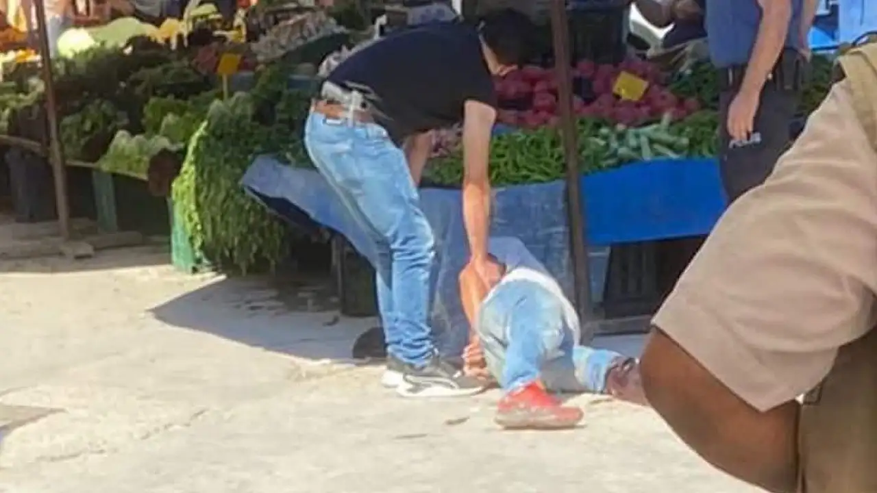 Halk pazarında bıçakla saldıran şüpheli, ayağından vurularak yakalandı
