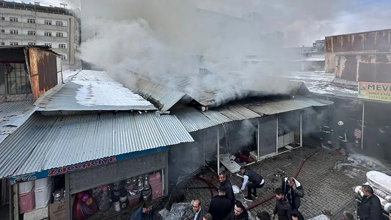 Van'da çok sayıda iş yerinin bulunduğu halk pazarında çıkan yangına müdahale ediliyor