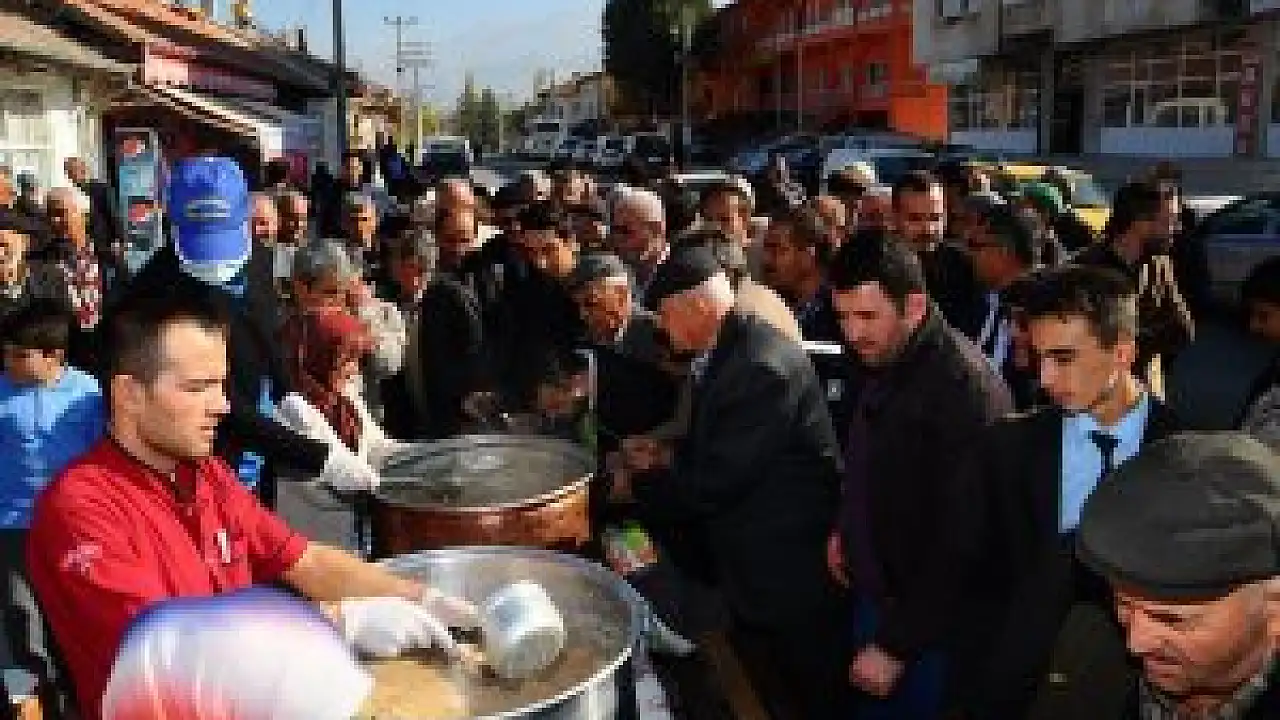 Merkez Ağa Camisi'nde cuma namazı çıkışında, Halkapınar Belediyesince bin kişilik aşure ikramı yapıldı.