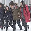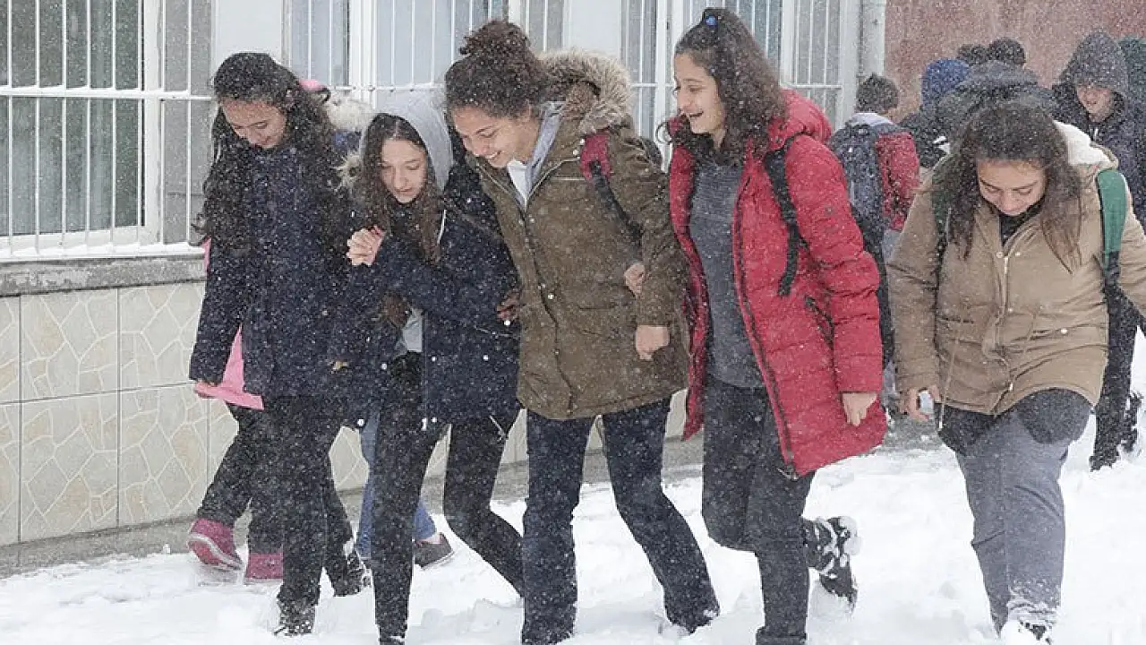 Gelen tatil haberi sonrası kendilerini sınıflarından dışarıya atan öğrenciler, tatil müjdesini bahçede kar topu oynayarak kutladı.