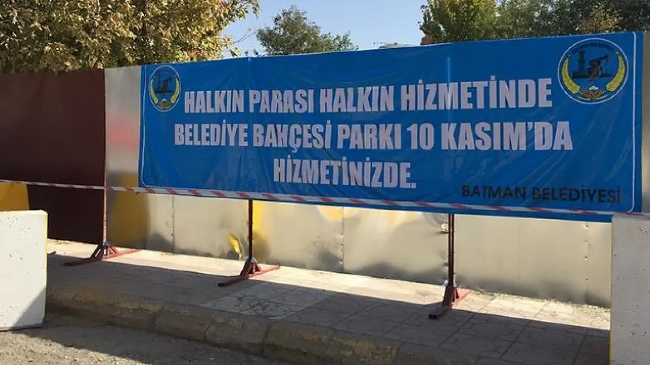 İçişleri Bakanlığınca KHK ile görevlendirme yapılan Batman Belediyesi tarafından çalışma yürütülen alanlara, 'Halkın parası halkın hizmetinde' yazılı afiş asıldı.