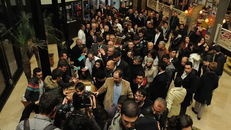 Merkezin giriş katında bekleyen görevliler, etkinliğe katılan vatandaşlardan bilet yerine kitap topladı.