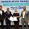 Barış Manço Kültür Merkezi'nde düzenlenen Hamamlıkızık Mahallesi Tapu Teslim Töreni'ne Yıldırım Belediye Başkanı Oktay Yılmaz'ın yanı sıra Yıldırım İlçe Tapu Müdürü Enes Gezmiş, belediye meclis üyeleri, Hamamlıkızık Mahalle Muhtarı Feridun Çakır, Hamamlıkızık malik ve sakinleri katıldı. Göreve başladıklarında Yıldırım'ın en önemli probleminin imar uygulaması, hisseli parsel, tapu ve mülkiyet sorunu olduğunu belirten Yıldırım Belediye Başkanı Oktay Yılmaz, "Yıldırım'da göreve geldiğimizde ilçemizin 3'te birinde imar problemleri vardı. 1986 yılından bu yana, yapılan imar uygulamaları vatandaşlardan gelen itirazlar sebebiyle bozuluyordu. Bizlerde bu dönem içerisinde problemlerin tamamını gidereceğiz dedik. Ankara'ya gidip derdimizi anlattık. Sağ olsun Çevre Şehircilik ve İklim Değişikliği Bakanımız Murat Kurum bizi dinledi ve sorunun çözümü için ortaya irade koydu. İmar Kanunu'nun 18. Maddesi'nde yapılan değişiklik ile imar uygulamalarının sürekli değişmesine sebep olan sorunu kökten çözdük ve 2022 yılını bu sebeple Tapu ve Dönüşüm Yılı olarak ilan ettik. Bu kapsamda yıl içerisinde ilçemizin birçok mahallesinde 33 bin tapu dağıtımı gerçekleştireceğiz. Yıldırım Belediyesi olarak Ankara yolu kuzeyindeki yıllardır problemi devam eden 6 mahallemizde de imar uygulamasını gerçekleştiriyoruz. Bu yıl inşallah Tapu Kadastro Müdürlüğü'müzün de katkılarıyla beraber buralardaki imar uygulamalarını çözeceğiz. İmar uygulamalarıyla paralel yürüttüğümüz dönüşüm çalışmalarını hayata geçiriyoruz. Model olacak Mevlana Kentsel Dönüşüm projesi buna güzel bir örnek. Mevlana Kentsel Dönüşüm Projesi'nde hemşehrilerimiz ile yüzde 100 uzlaşı gerçekleştirdik, hepsinin onayını alarak çalışmalarımıza başladık. Bu yöntemle hareket etmemiz bölgede güzel bir sinerji oluşturdu" dedi.
