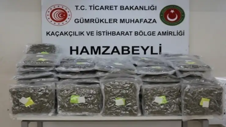 Ticaret Bakanlığı Gümrük Muhafaza ekiplerince, Hamzabeyli Gümrük Kapısı'nda 60 kilo 756 gram esrar ele geçirildi.