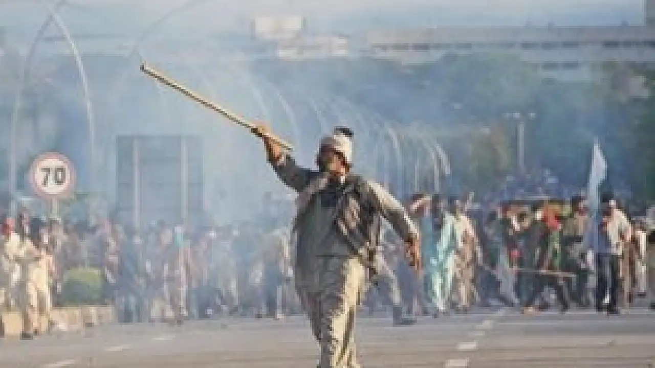 Şerif'in istifası talebiyle başlayan bakanlık binaları ve parlamentonun yer aldığı kırmızı bölgede devam ediyor. Olaylar sırasında Pakistanlı bir polis 7-8 kişi tarafından neredeyse linç ediliyordu. Eli taşlı sopalı göstericiler, yere yığılan polisi böyle dövdü.