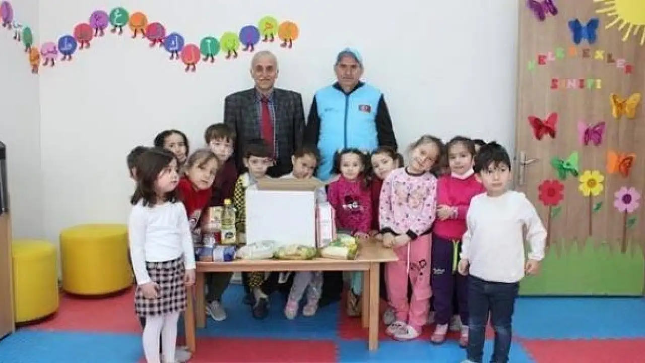 Bolu'nun Gerede ilçesinde yaşları 4 ila 6 arasında değişen Kur'an kursu öğrencileri biriktirdikleri harçlıklarla hazırladıkları gıda kolilerini ihtiyaç sahibi ailelere dağıttı.