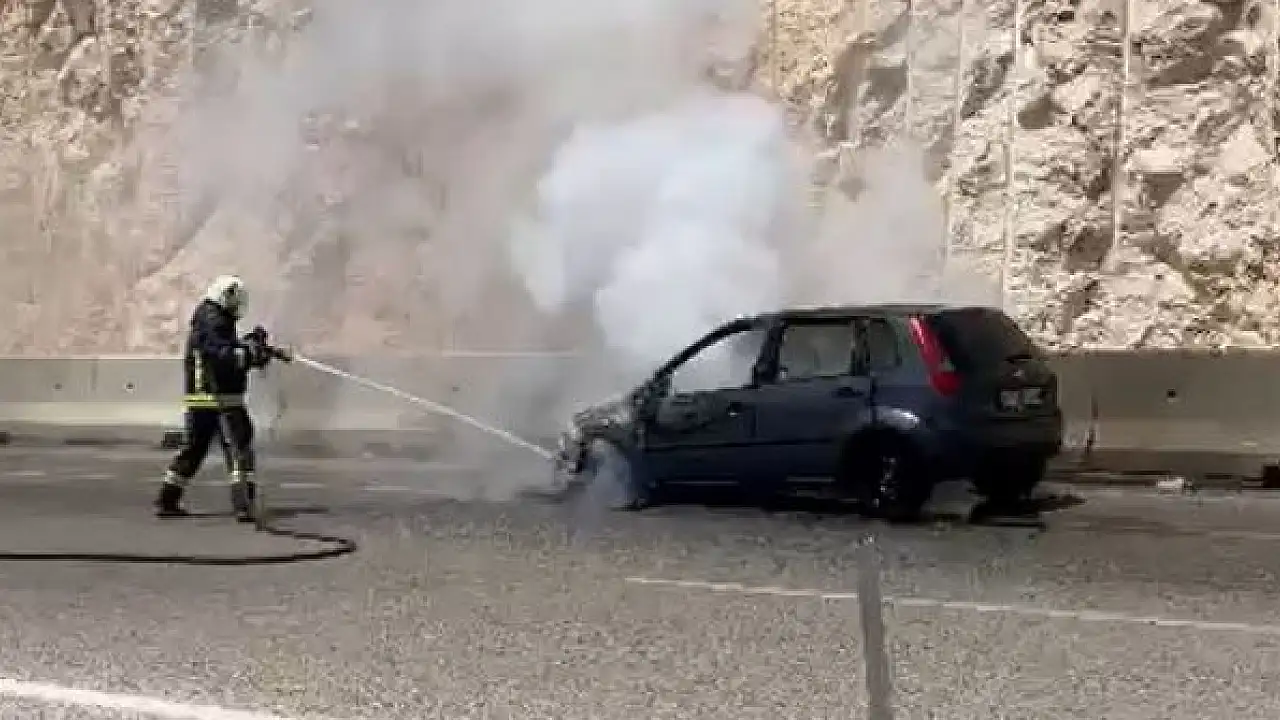 Korkuteli-Antalya karayolu Yazır Mahallesi çevreyolunda seyir halindeki bir araç cayır cayır yanarak kullanılamaz hale geldi.