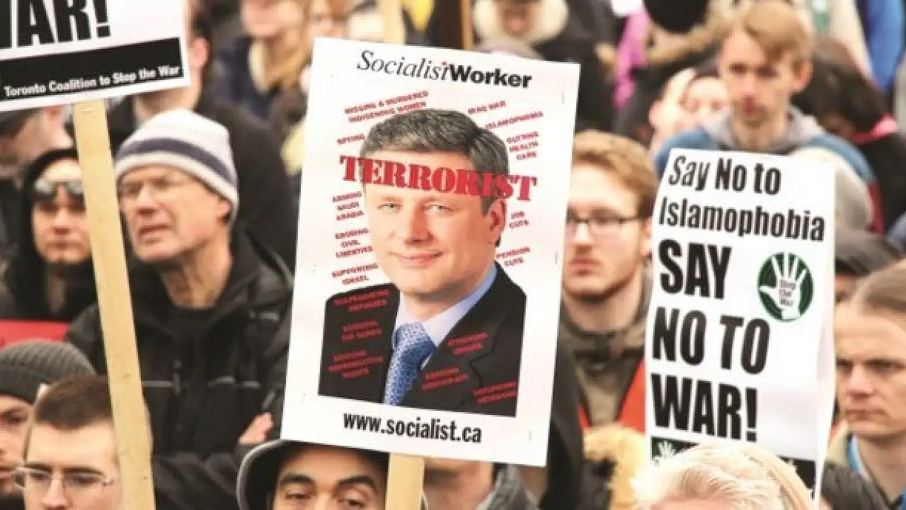 Kanada'da asker ve gizli servis görevlilerine aşırı yetkiler tanıyan İslamofobik terör yasası 100 kentte protesto edildi.