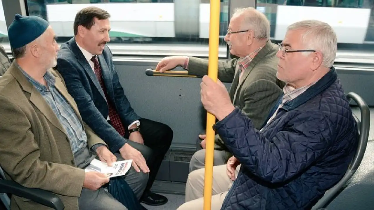 Hasan Kılca otobüste vatandaşlarla sohbet etti