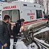 Hasta almaya giden ambulans karlı köprüde kayınca yardımına köylüler yetişti