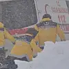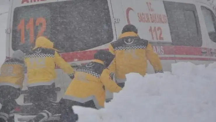 İş makinelerinin arkasından ilerleyen 112 Acil Servis ambulansı dik bayırları çıkamayınca, Ambulansta görevli sağlık ekipleri zorlanan ambulansı arkasından itmeye başladı. Sağlık ekipleri arasında bulunan bayan Acil Tıp Teknisyeni, hamile olmasına rağmen ambulans arkadaşlarına destek verdi.