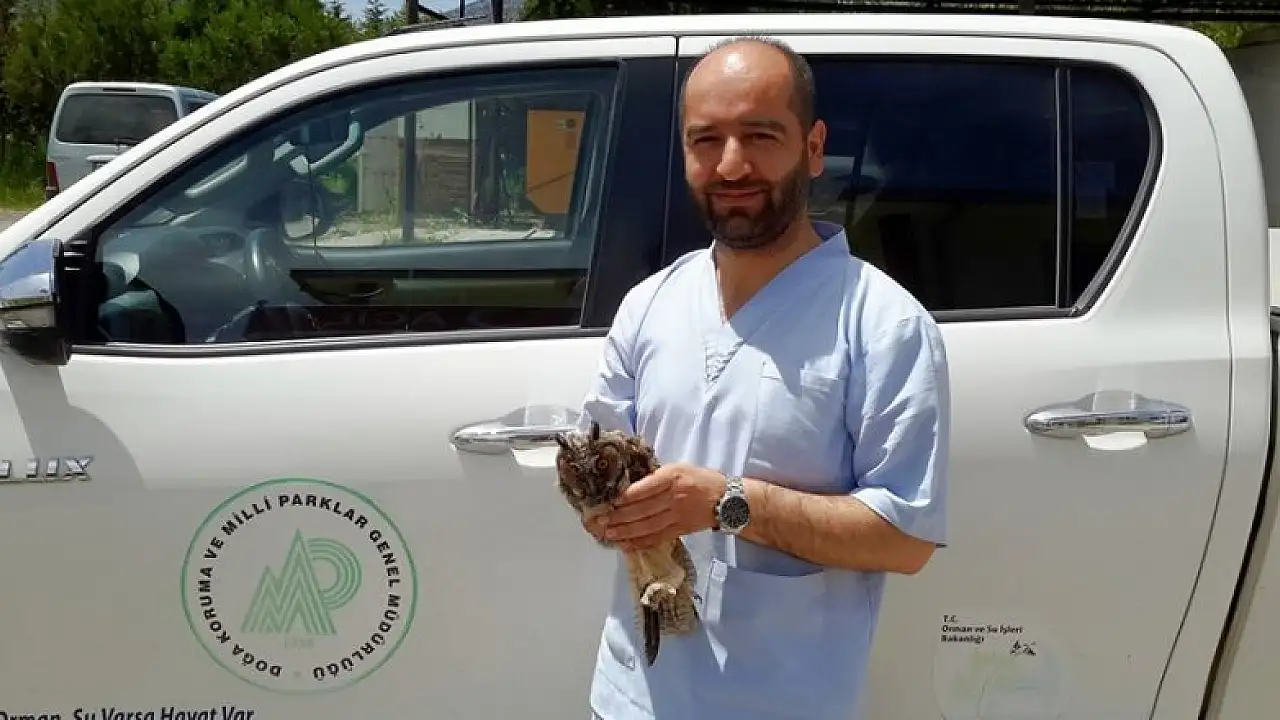 Konya'nın Akören ilçesinde hastane bahçesinde yaralı vaziyette bulunan Puhu Kuşu tedavi altına alındı.