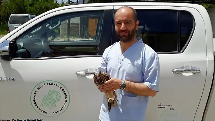 Hastane bahçesinde yaralı bulunan Puhu Kuşu koruma altına alındı