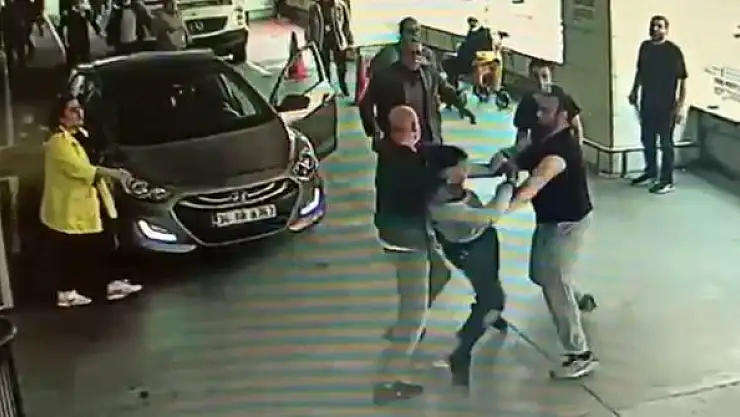 Taksim Eğitim ve Araştırma Hastanesi'nde acil servisin girişindeki ambulans yolunda bekleyen sürücü ile güvenlik görevlileri arasında kavga çıktı. Sürücü ve güvenlik görevlisinin birbirine girdiği kavgada 13 kişi polis merkezine götürülürken, o anlar güvenlik kamerasına yansıdı.