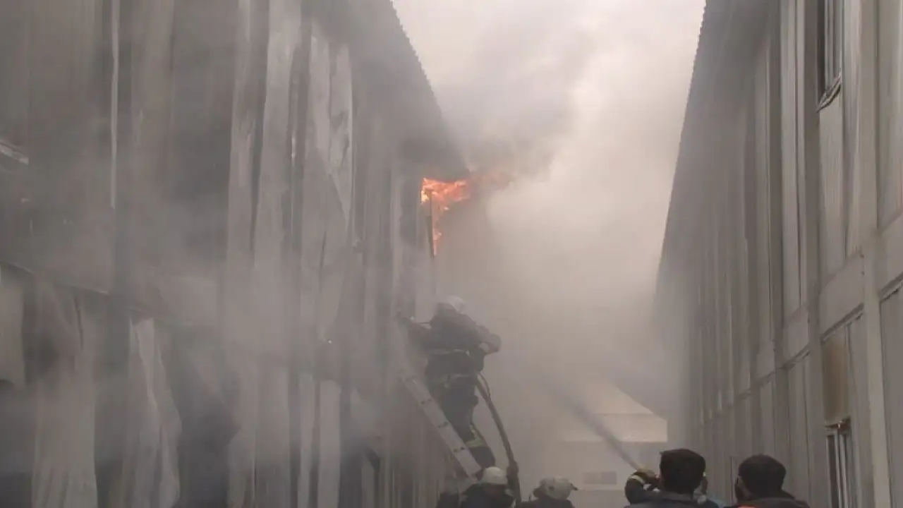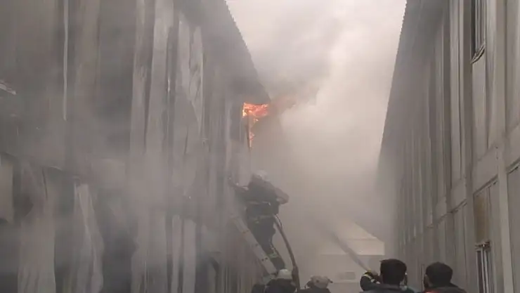 Hastane inşaatında çalışan 200 işçinin kaldığı konteyner alev alev yandı