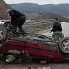Hastaneye hasta götürürken otomobiliyle takla attı
