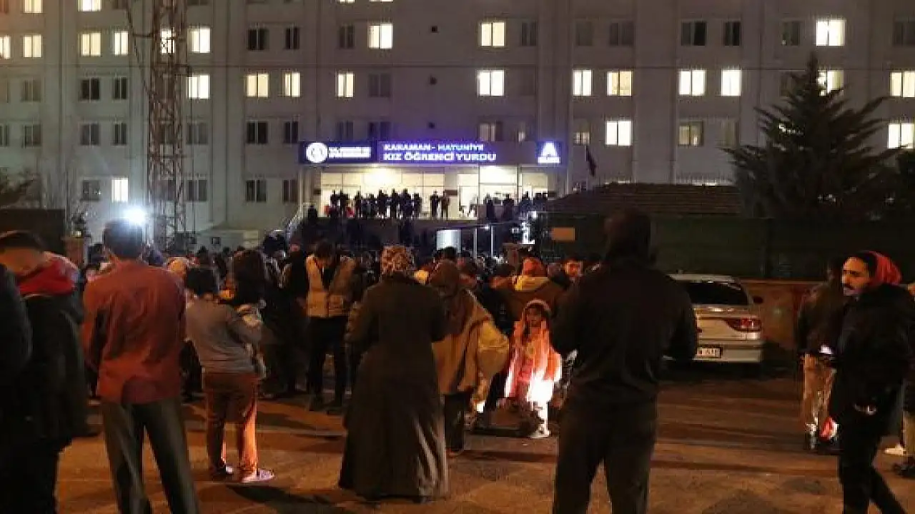 Hatay merkezli 6,4 ve 5,8 büyüklüğünde iki deprem meydana geldi. Sarsıntı Karaman'da da hissedildi. Deprem sonrası deprem bölgelerinden Karaman'a gelerek KYK yurtlarına yerleştirilen depremzedeler panik yaşayarak yurtlardan dışarı çıktılar.