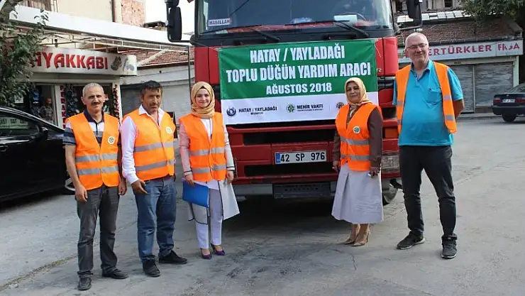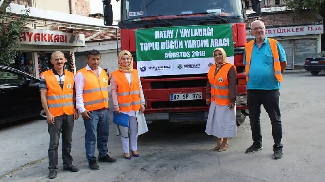 Hatay'ın Yayladağı Belediyesi ile Mehir Vakfı iş birliğinde gerçekleştirilecek toplu nikah töreninde, 21 çift için temin edilen 1 tır dolusu ev eşyası ve hediye takıları Hatay'a gönderildi. Gençleri Evlendirme ve Mehir Vakfı Özel Kalem Müdürü Fatma Nur Aşçı şu açıklamalar da bulundu; “Hatay Yayladağı Belediyesi, Mehir Aile Derneği ve vakfımız işbirliği ile Hatay Yayladağı’nda gerçekleştireceğimiz 21 çiftimizin eşyasını Hatay’a uğurluyoruz. Hayırseverlerimizin desteğiyle hazırlamış olduğumuz yardım tırımızda giyim, ev tekstili, mobilya, züccaciye, altın takı olmak üzere 97 kalem 1.923 adet eşya bulunmaktadır. Hatay Yayladağı’nda evlenecek olan 21 ihtiyaç sahibi çiftimizin toplu düğün merasimleri 04 Ağustos 2018 Cumartesi günü saat 19.00’da Hükümet Konağı Önünde, Hatay Yayladağı Belediyesi, Mehir Aile Derneği ve vakfımız tarafından gerçekleştirilecektir. Tüm hayırseverlerimizi ve gönüldaşlarımızı bu mutlu günümüze şahitlik etmek için, çiftlerimizin yanında olmaya sizlerin huzurunda davet ediyoruz. Toplu düğünümüzün gerçekleşmesinde maddi ve manevi desteklerini esirgemeyen başta Mehir Vakfı Mütevelli Heyeti Başkanımız Sayın Mustafa Özdemir Beyefendiye, Yayladağı Belediye Başkanımız Sayın Mehmet Kalkan Beyefendiye, tüm hayırseverlerimize ve basın mensubu arkadaşlarımıza vakfımız ve şahsım adına teşekkür ediyor, saygılarımı sunuyorum” dedi.