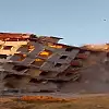 Kahramanmaraş merkezli depremlerde ağır hasar alan Hatay'da mahkeme süreci sona eren binaların yıkım ve enkaz kaldırma çalışmaları aralıksız sürüyor. Antakya ilçesi Saraycık Mahallesi'nde bulunan 8 katlı bina, iş makinesinin darbesiyle kontrollü olarak yıkıldı. Binanın yıkılma anı ise kameralara saniye saniye yansıdı. 8 katlı binanın yıkımı esnasında herhangi bir olumsuzluk yaşanmadı.