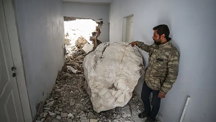 Hatay'da depremde yıkılmayan evlere dağdan kopan kayalar zarar verdi