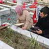 Aileler, Türk bayraklarıyla donatılan mezar taşlarını yıkadı, yakınlarına dua etti, Kur'an-ı Kerim okudu.