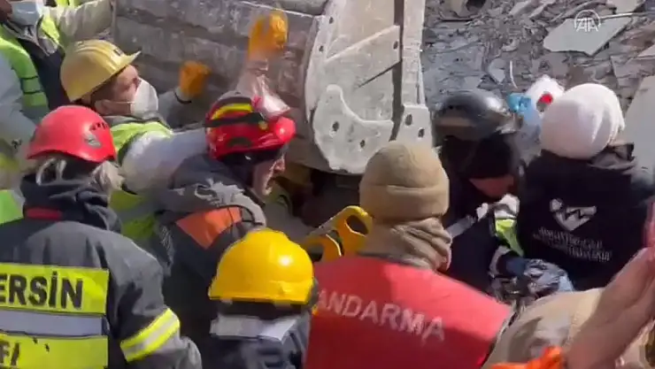 "Yan dairede öğretmen kızımızı bulduk. Tabyayı az kaldırınca görüntü aldık. Sonra durdurduk çalışmayı. Kendi çalışmamızı yürüttük. İlk önce eks sanmıştık, bir tepkisi yoktu. Sırtına dokunduğumuzda baktık ki yaşam belirtisi var. Bizimle de iletişime geçti, biraz konuştuk. Galiba annesi babası da içerideymiş."