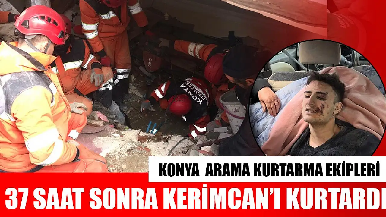 Konya Büyükşehir Belediyesi arama kurtarma ekipleri, Hatay'da depremden 37 saat sonra 24 yaşındaki Kerimcan Biter'i enkazdan sağ olarak kurtardı.