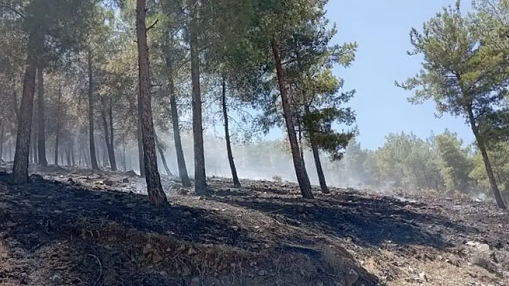 Yaklaşık 30 dönüm alanın zarar gördüğü yangını soğutma çalışmaları sürüyor.