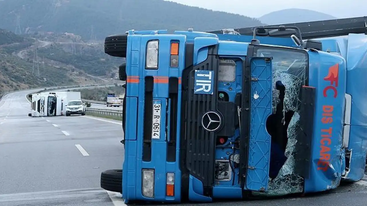 Hatay'da şiddetli fırtına nedeniyle 2 tır devrildi