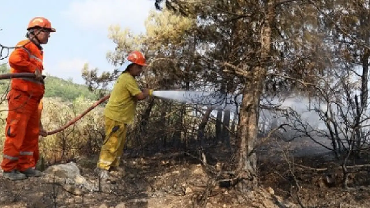 Hatay'da, dün kontrol altına alınan orman yangınında soğutma çalışmaları sürüyor.