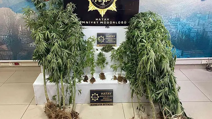 Harbiye Mahallesi'nde bulunan bir ikamette yapılan aramada boyları 30 cm ile 250 cm arasında değişen 18 kök Hint keneviri, 18.07 gram kubar esrar, 1 adet metal esrar öğütme aparatı ele geçirildi.