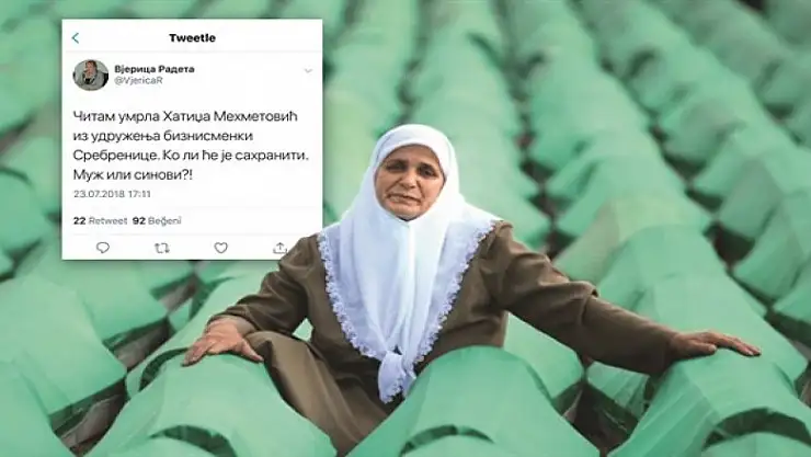 Sırbistan Milletvekili Vijerica Radeta, Srebrenitsa'da eşi ile oğlunu yitiren ve dün vefat eden Hatice Mehmedovic ile dalga geçer gibi bir paylaşım yaptı.