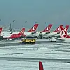 DHMİ karla mücadele ekipleri, kar yağışının uçuşları aksatmaması için çalışmalarını aralıksız sürdürürken, havayolu şirketleri bir çok uçuşu iptal ettiğini duyurdu.