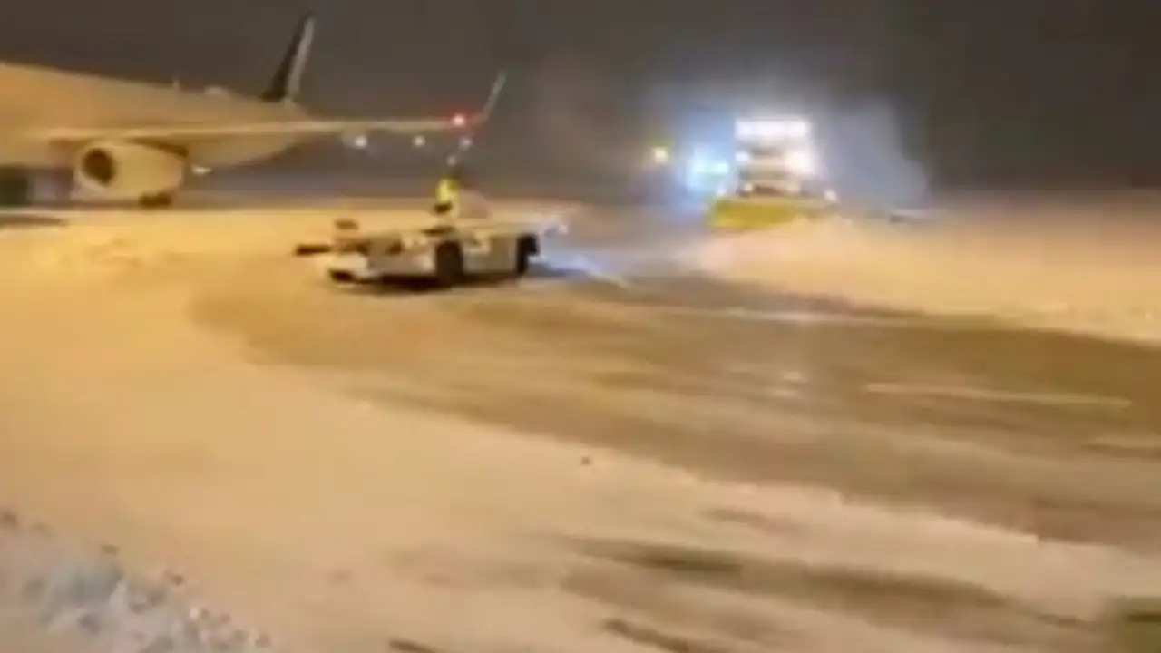 Konya'daki yoğun kar yağışı devem ederken havalimanında da yoğun çalışmalar devam ediyor.