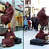 Cenevre sokaklarında gerçekleştirilen iki kişilik gösteride, yerde oturan kişinin elindeki sopayı tutarak havada oturur halde duran şovmen, dondurucu soğuğa rağmen sokaktan geçen herkesi çevresinde toplamayı başardı.
