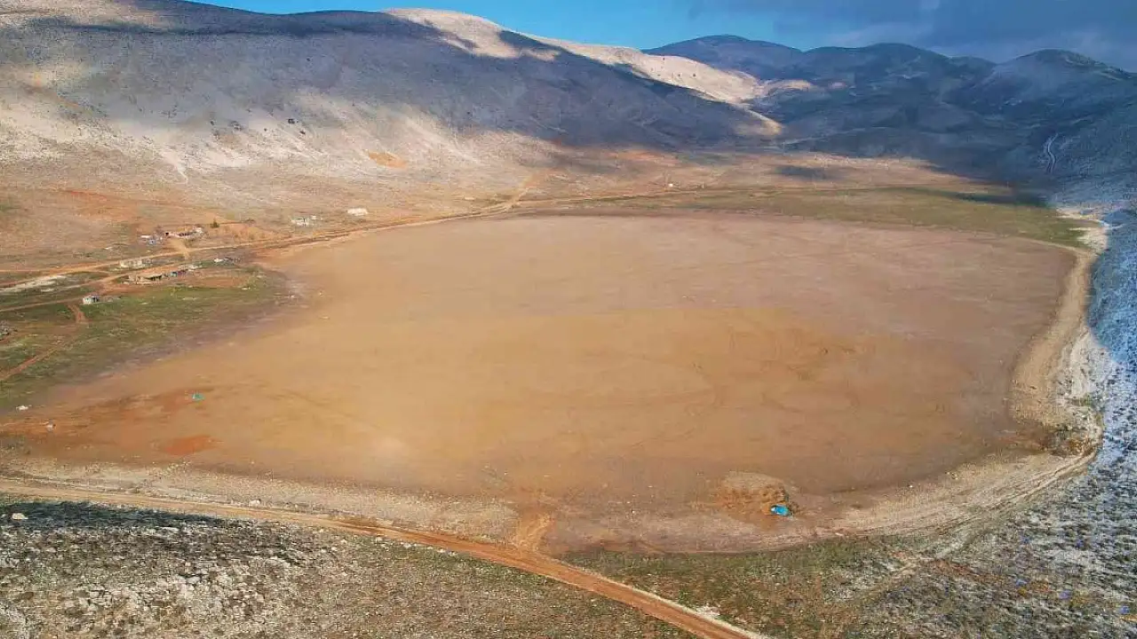 Kahramanmaraş'ta yetersiz yağışlar nedeniyle Ahır Dağı zirvesinde yer alan Karagöl tamamen kurudu.