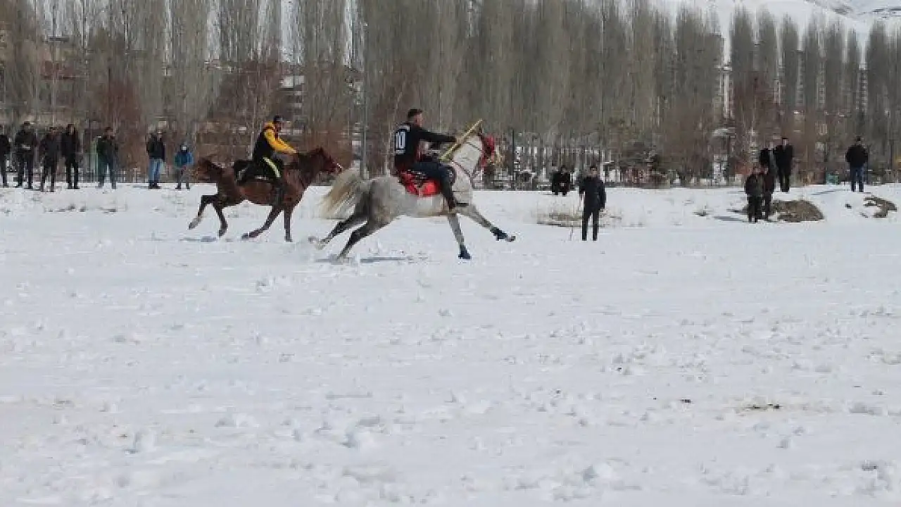 Bayburt'ta soğuk kış günlerinin vazgeçilmez etkinliği olan cirit turnuvaları kar üzerinde oynanmaya devam ediyor.