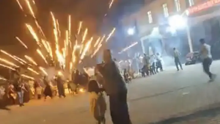 NİĞDE'de bir sokak düğününde havaya atılan havai fişekler, davetlilerin üzerine düşerek patladı. Konukların panik içinde etrafa kaçıştığı olay, cep telefonuyla görüntülendi.