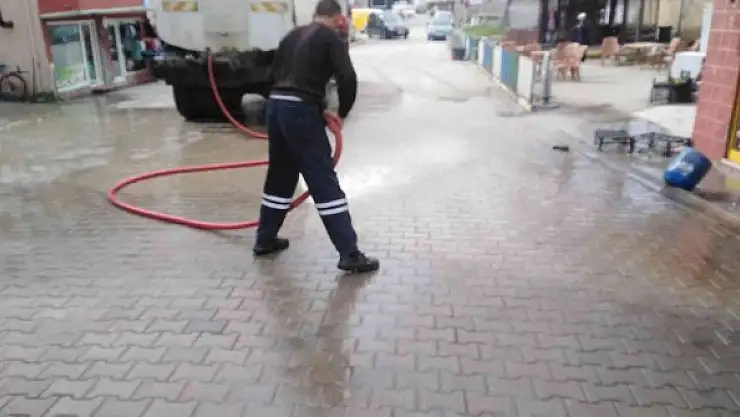 Cumayeri ilçesinde cadde ve sokaklar baharın gelmesi ile birlikte su ile yıkandı.
