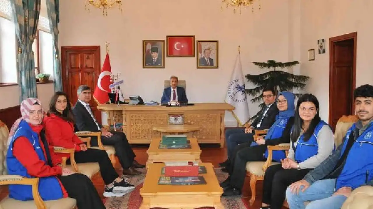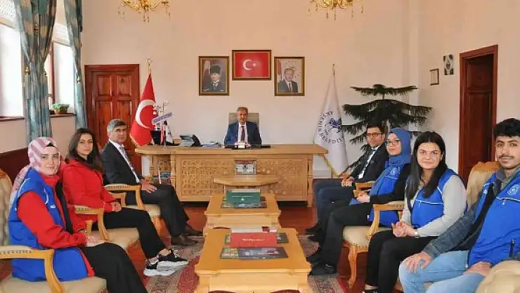 Konya'nın Akşehir ilçesinde doğumu yarım kalan ve içindeki yavrusu ölen sokak kedisinin sezaryenle ameliyatıyla hayata döndürülmesinin ardından Akşehir Gençlik Merkezi görevlileri ziyaret ettikleri Akşehir Belediye Başkanı Salih Akkaya'ya teşekkür etti.