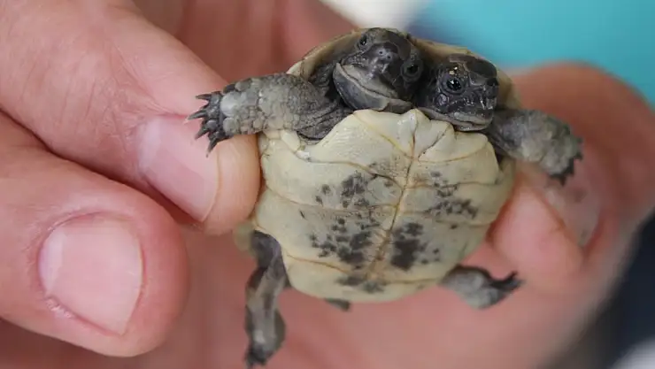 Hayrete düşüren olay Çift başlı kaplumbağa bulundu